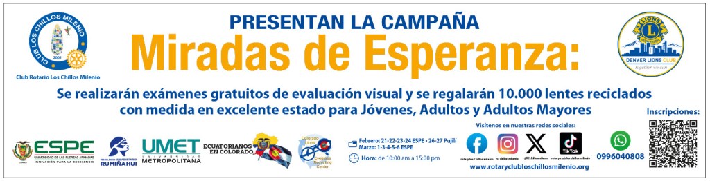 Durante la entrevista, Terry Ayerve hizo el lanzamiento oficial, ante los medios, de nuestra Campaña Miradas de Esperanza. Explicó detalladamente los alcances de la misma y los procesos que se están llevando a cabo para que sea un éxito total. Asimismo, Invitó a los audio-escuchas a inscribirse y beneficiarse de la entrega gratuita de lentes reciclados con medida.