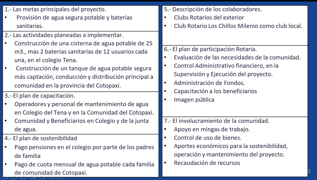 Asimismo se construirá un tanque de agua potable segura, más la captación, conducción y distribución principal de agua potable a la comunidad en Cotopaxi.