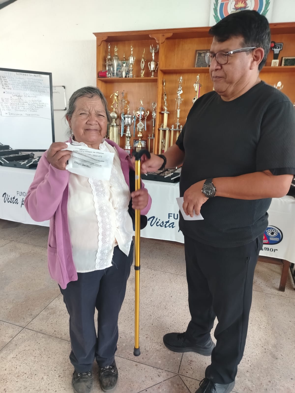 Durante el evento que se llevó a cabo en la Cancha de San Nicolás en Sangolqui, se entregaron 700 lentes para lectura, 200 bastones y una silla de ruedas.